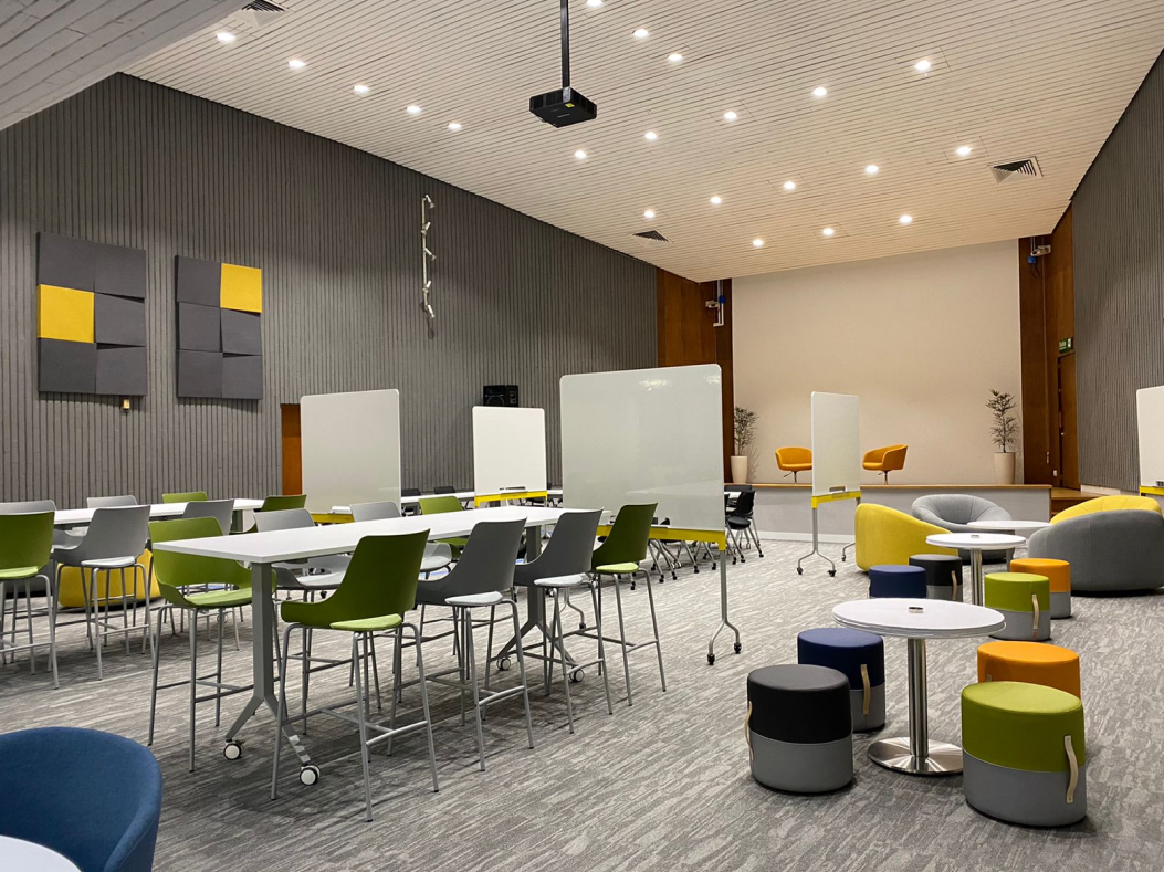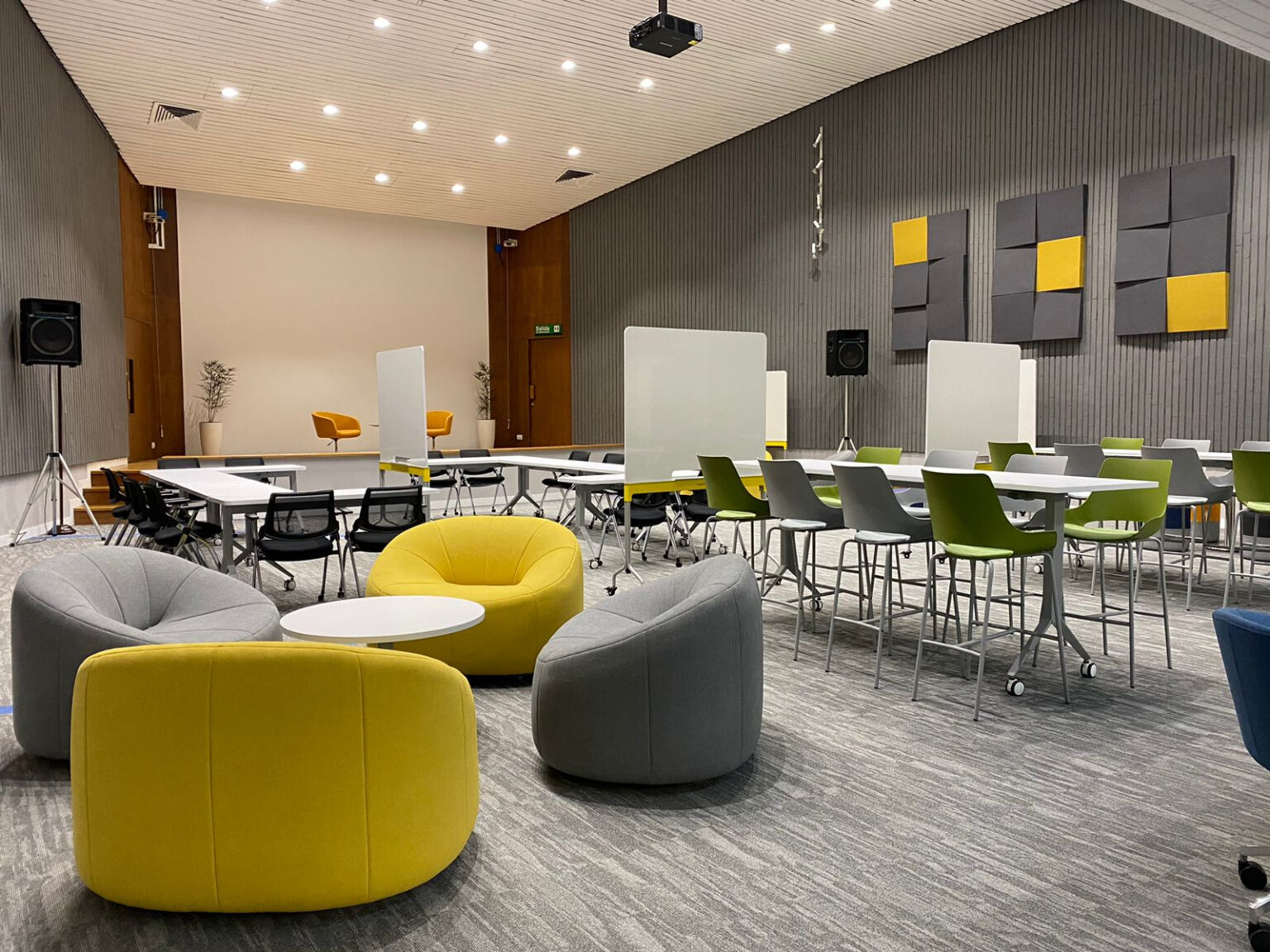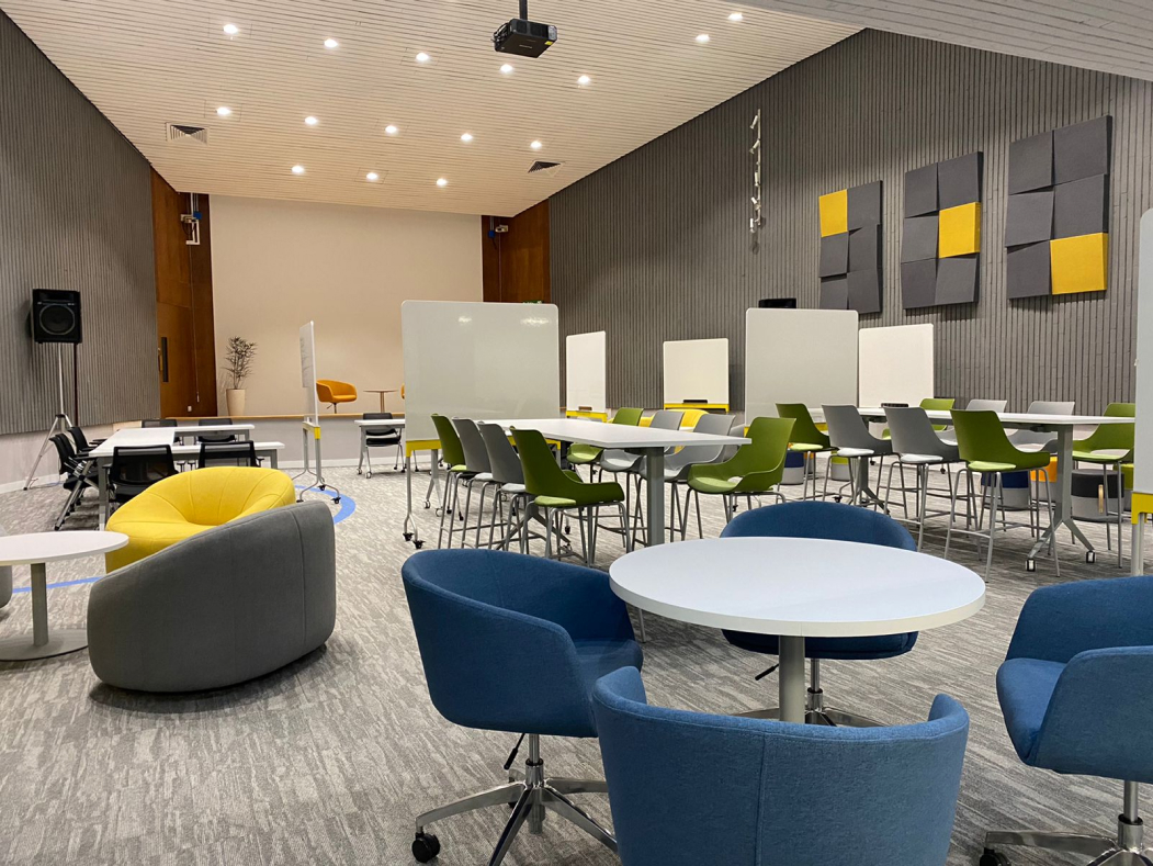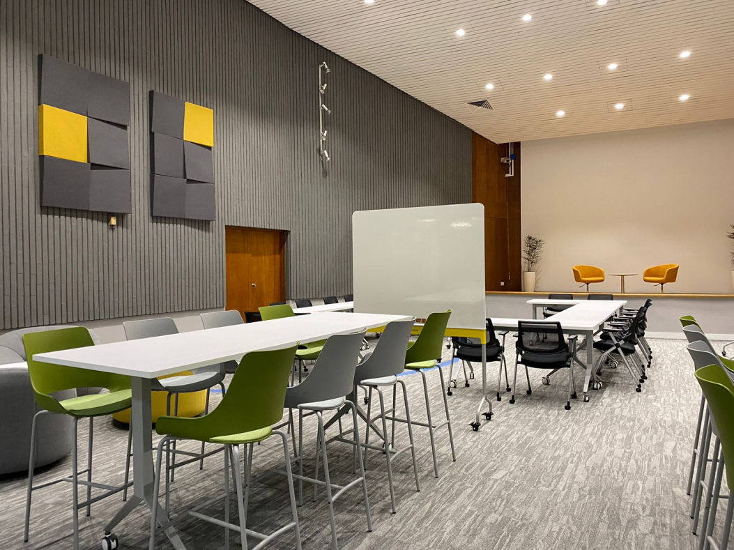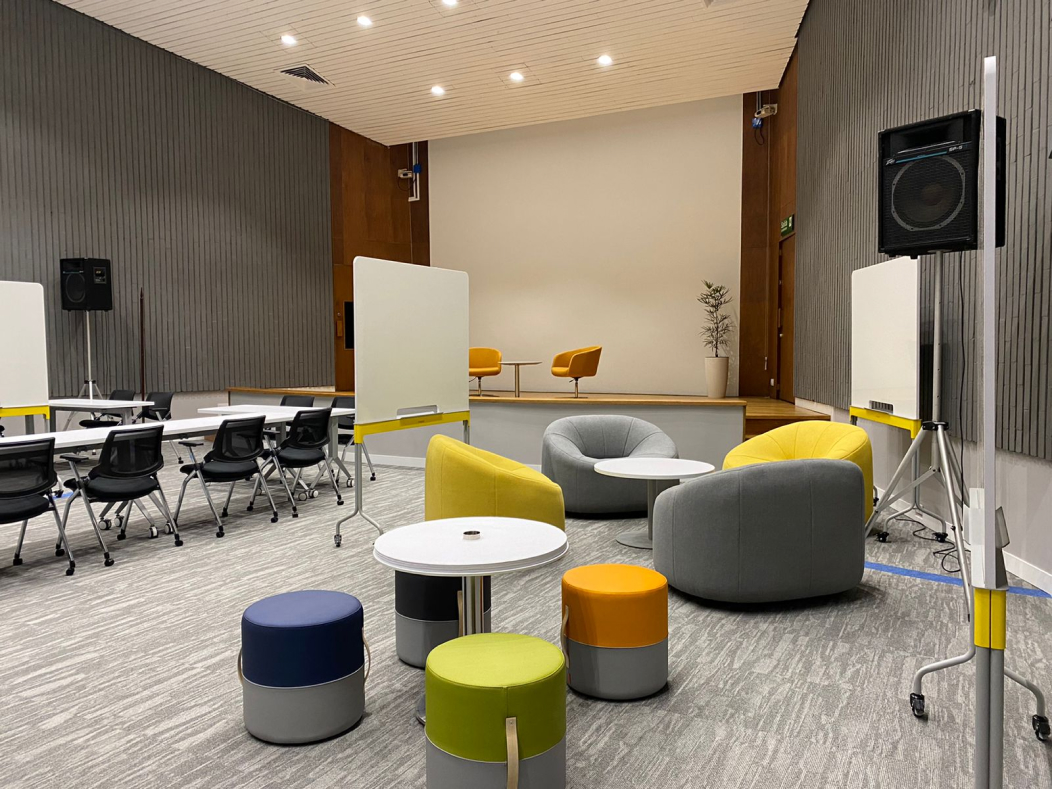 Las diferentes tipologías de mobiliario, como barras altas, salas lounge, mesas colaborativas, zonas reconfigurables, con un manejo de color atrevido, pretendió potencializar los sentidos.