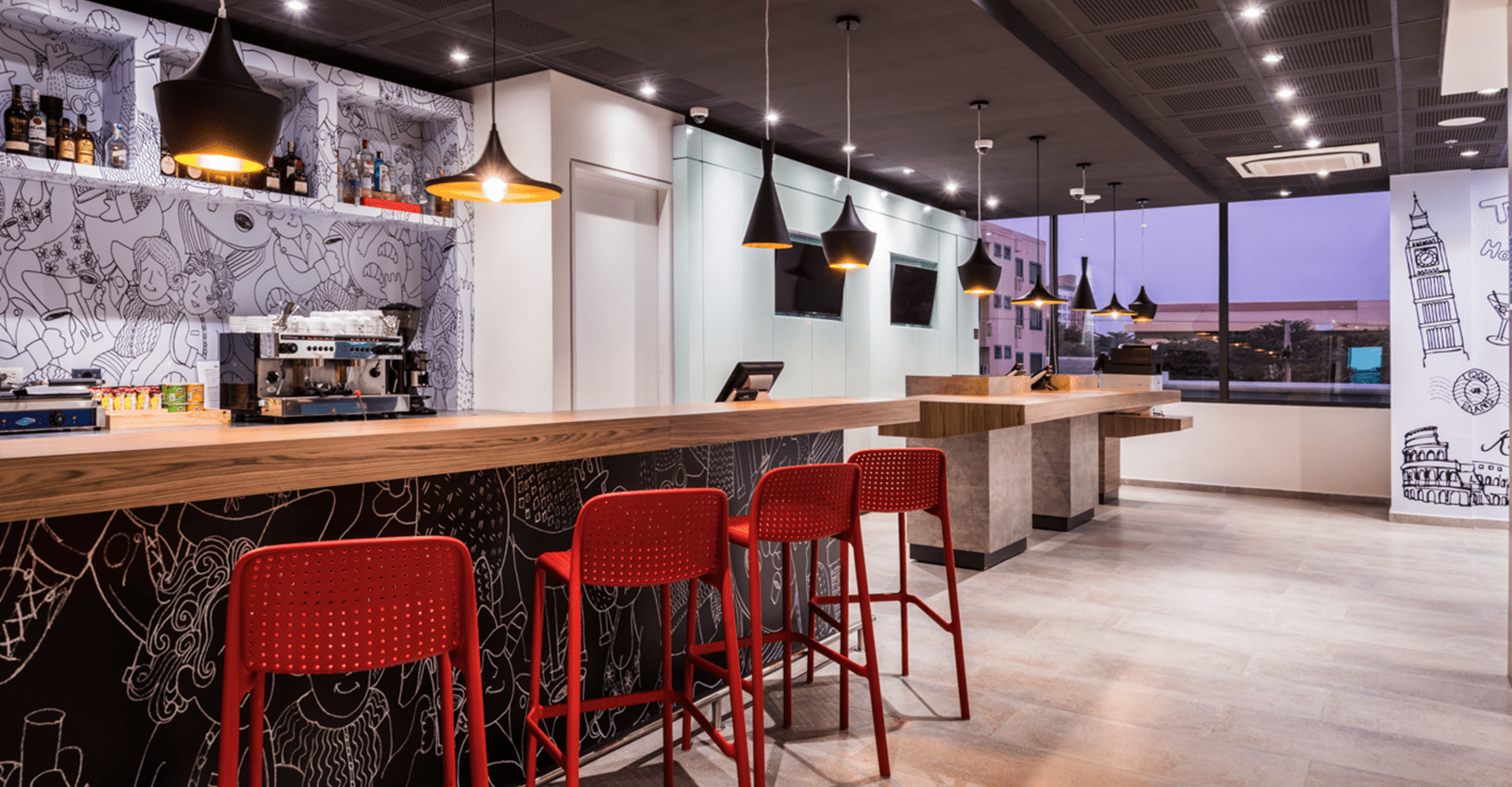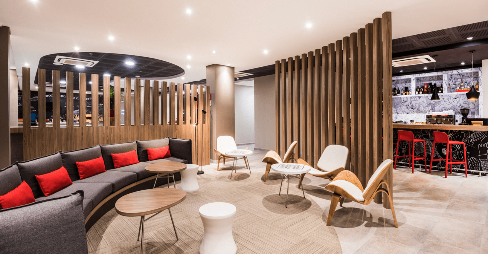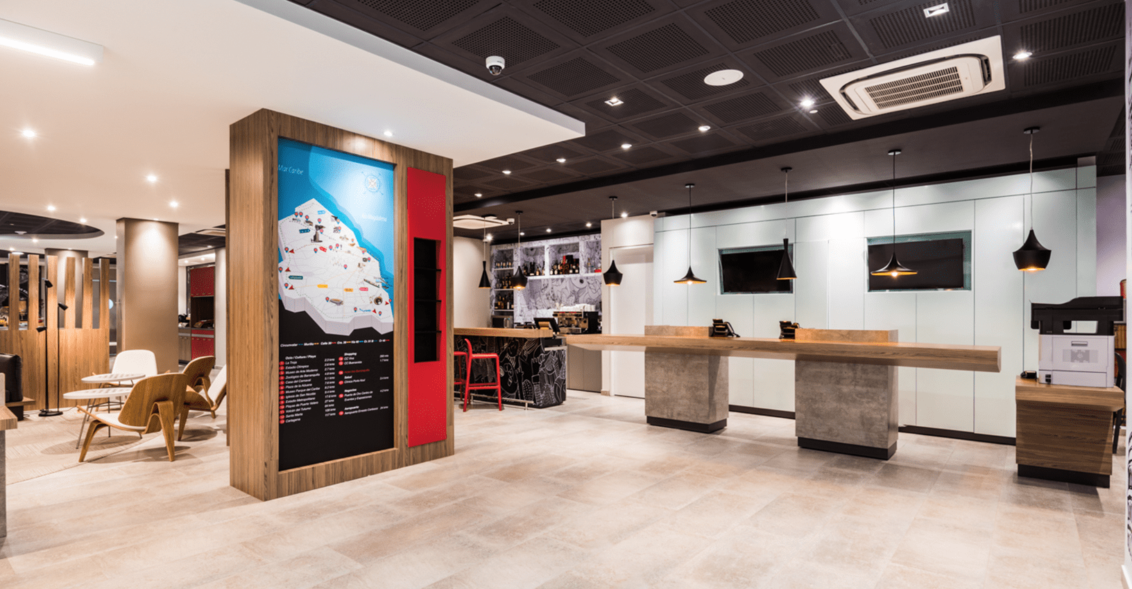 Ubicado en una de las zonas empresariales de mayor desarrollo de la ciudad de Barranquilla, el nuevo hotel de la cadena Accor debía adaptarse a los lineamientos y estándares globales de la compañía en materia de diseño interior y acabados. Esta fue la tarea que nos encomendó el grupo inversionista del proyecto. El trabajo conjunto con Accor para el desarrollo de cada detalle del interiorismo de este proyecto, fue clave para lograr traer la esencia de la marca Ibis a la costa colombiana respetando al máximo los estándares en materia de acabados, colores, imagen gráfica y presupuesto del proyecto.