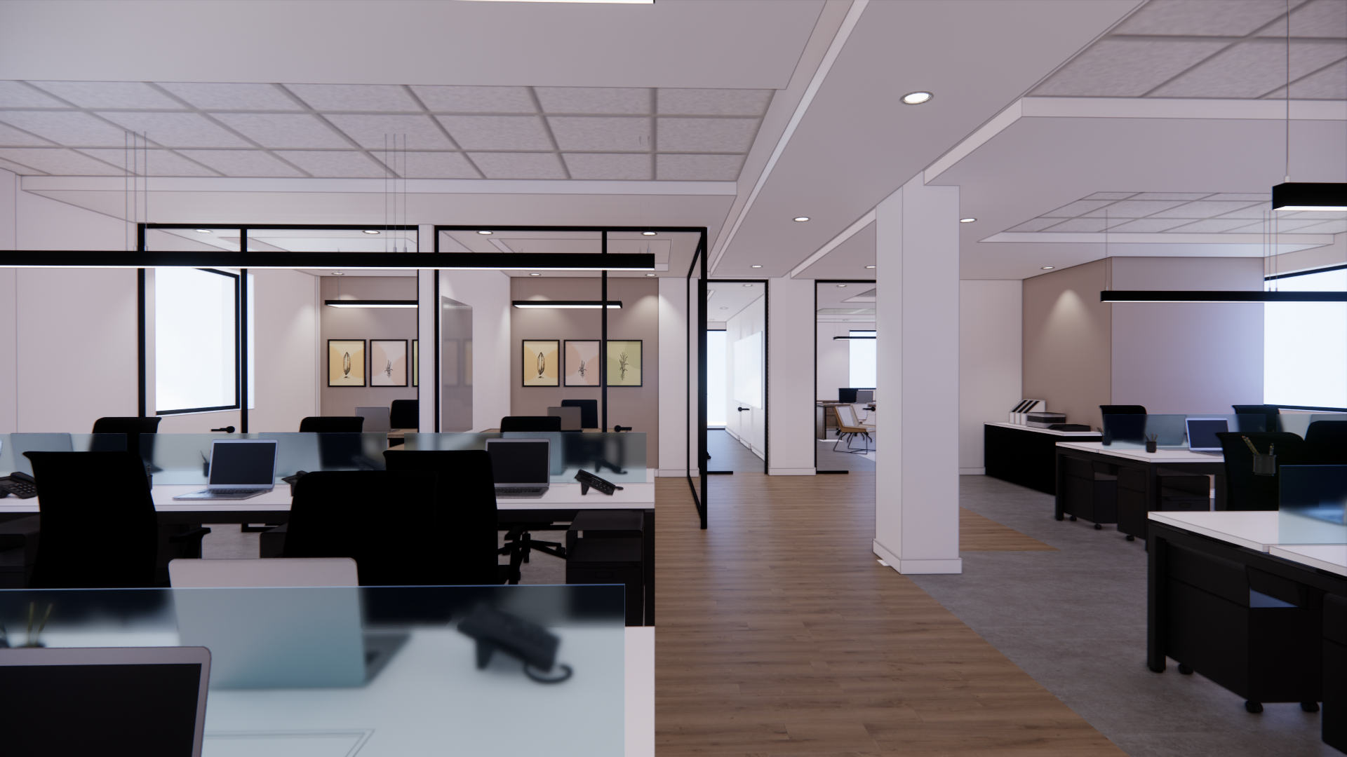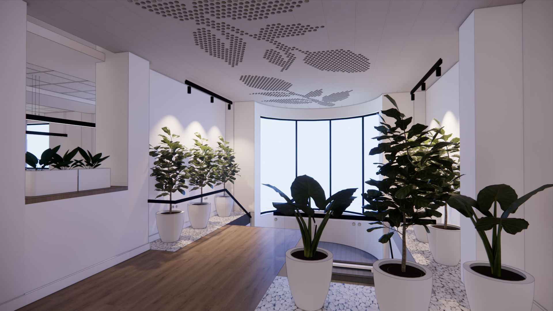 La biofilia (plantas naturales) jugo un papel muy importante en las oficinas, dándoles frescura y renovación al ambiente.