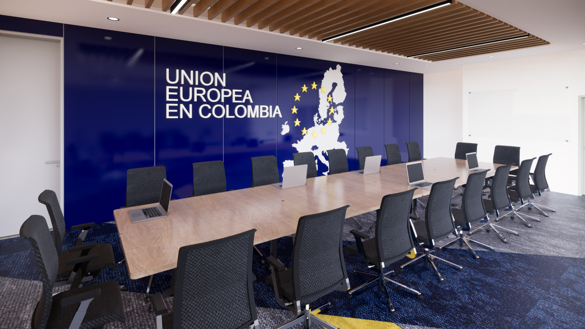 En asociación con CREA MANAGEMENT, nos presentamos a la licitación para el Diseño y Gerencia de Proyecto de las nuevas oficinas de la Unión Europea en Bogota. Durante el proceso de diseño, tuvimos la oportunidad de reunirnos con los diferentes delegados: con la orientación desde Bruselas, en sincronía con los delegados locales del área administrativa, comunicaciones, y el propio HOD (Head Of Delegation de Colombia), tuvimos el gusto de explorar nuestra creatividad sin límites, con la premisa de cumplir los estándares internacionales de calidad, altas especificaciones técnicas y rigurosidad en seguridad.