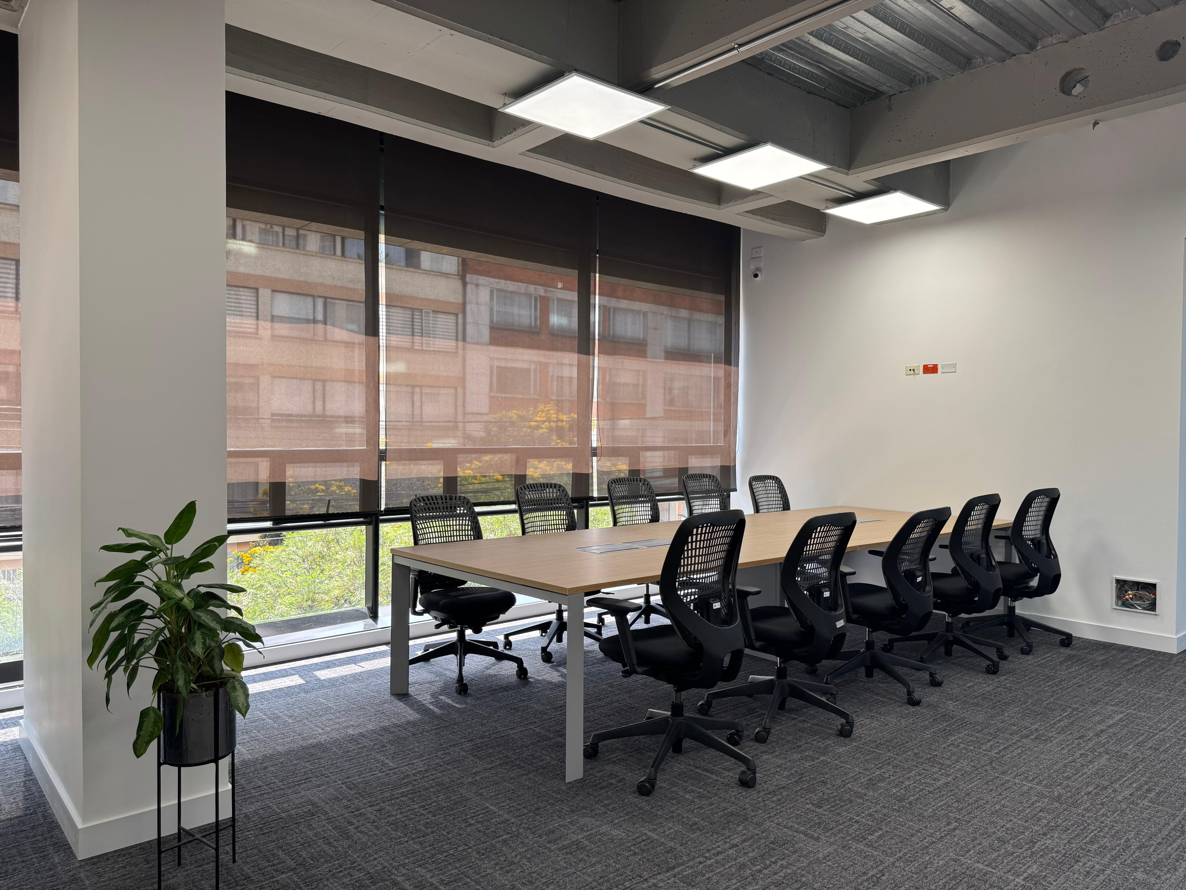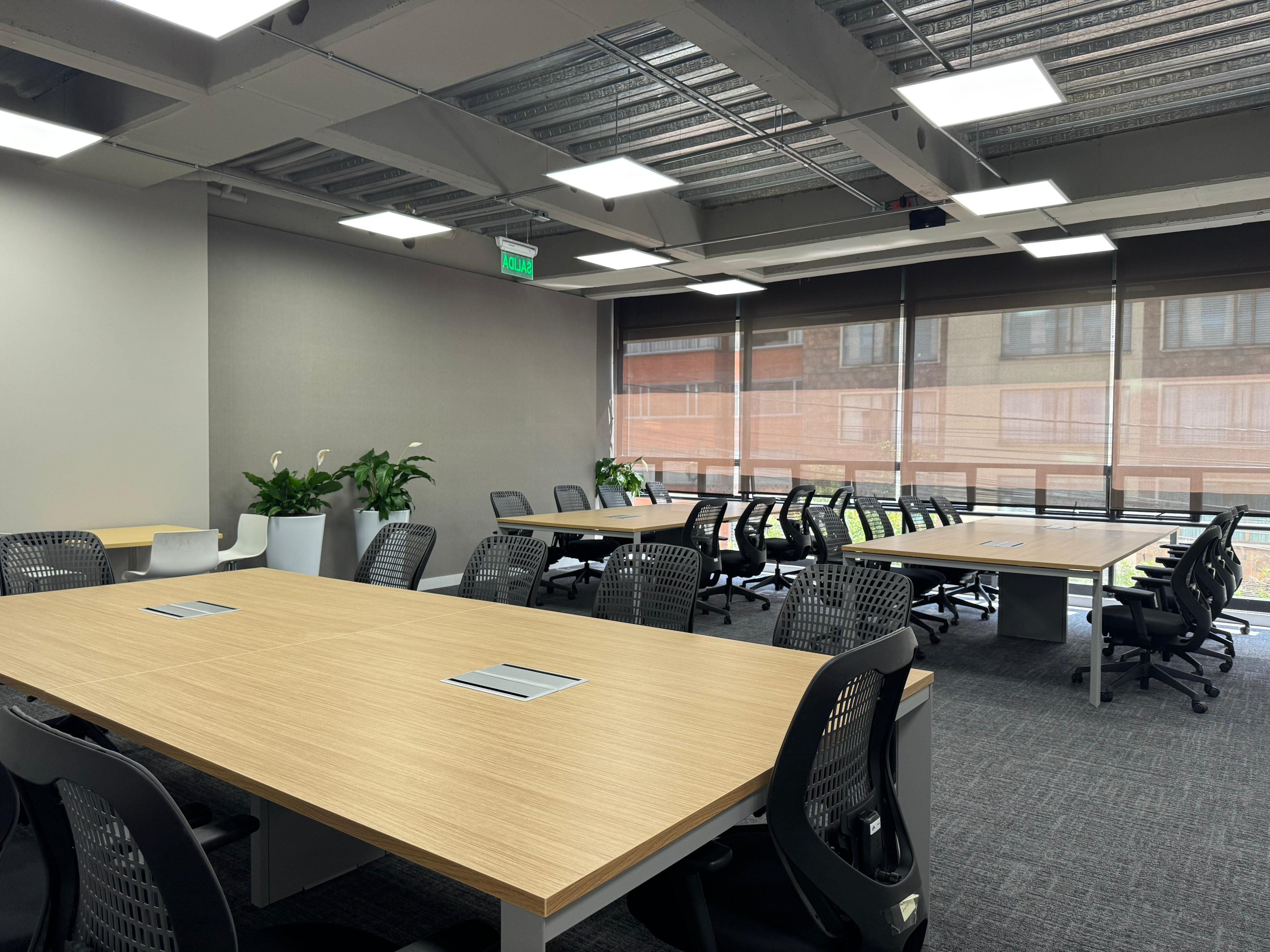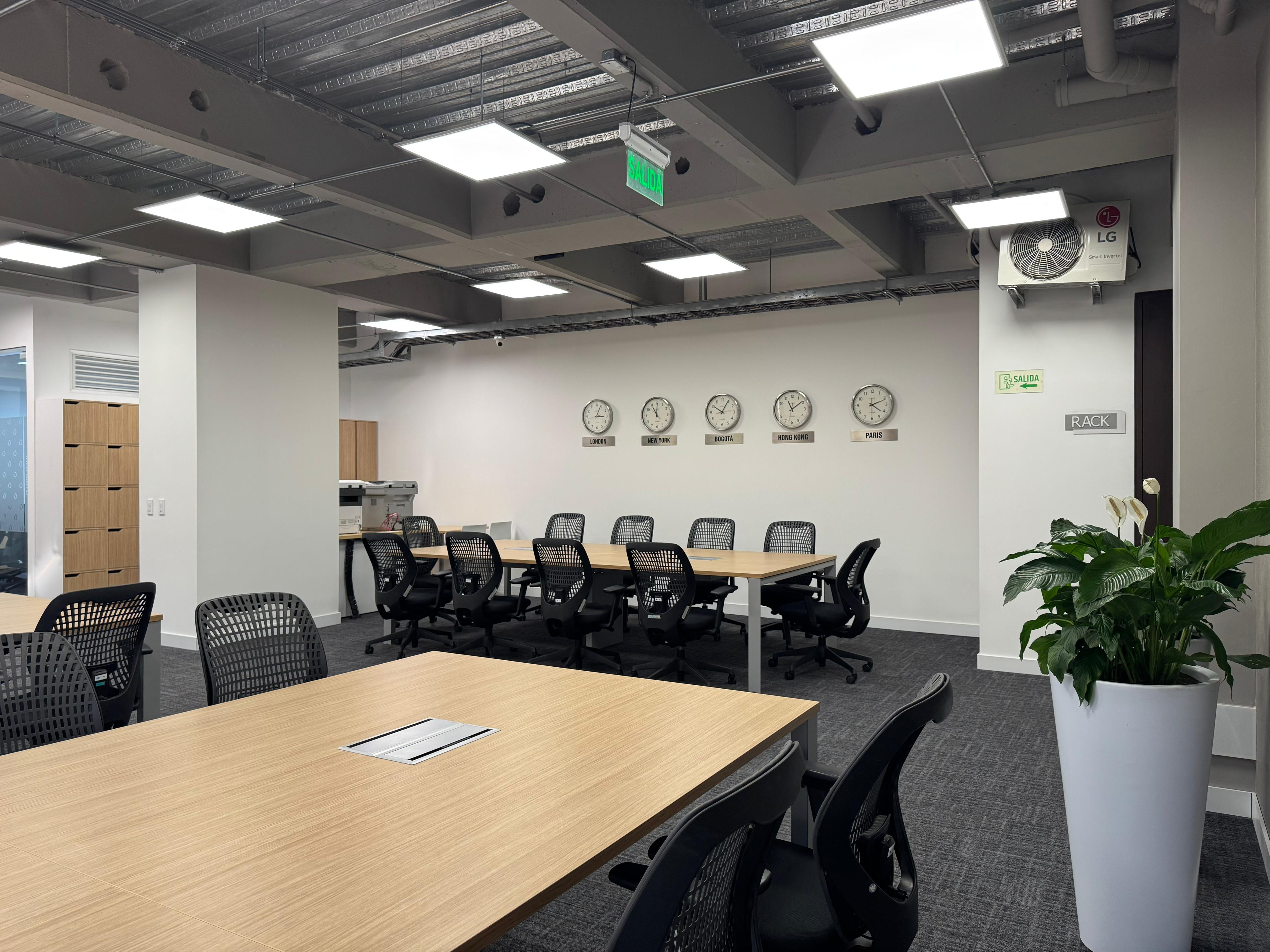 Ahora, en 2025, la firma ha experimentado un gran crecimiento, lo que generó nuevas necesidades. Por ello, este nuevo proyecto se enfocó en ampliar la capacidad del espacio, fomentando un ambiente de trabajo más colaborativo. Se optimizó el mobiliario, se reservaron áreas para el trabajo privado, se mejoró la iluminación natural y se rediseñó el área de intervención para que, a pesar de su mayor capacidad, se perciba más amplia y funcional.